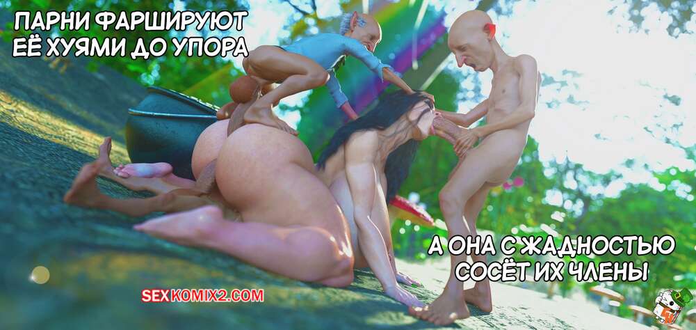 Порно комикс Лучше, чем золото. Версия с текстом. Часть 3. Better than Gold. GashousesushiArt Горячие милфы с аппетитными формами соблазнили гномов и вызвали у них стояки. Красотки оголились и отсосали хуи своих новых дружков, после чего отдались им во все дырочки.