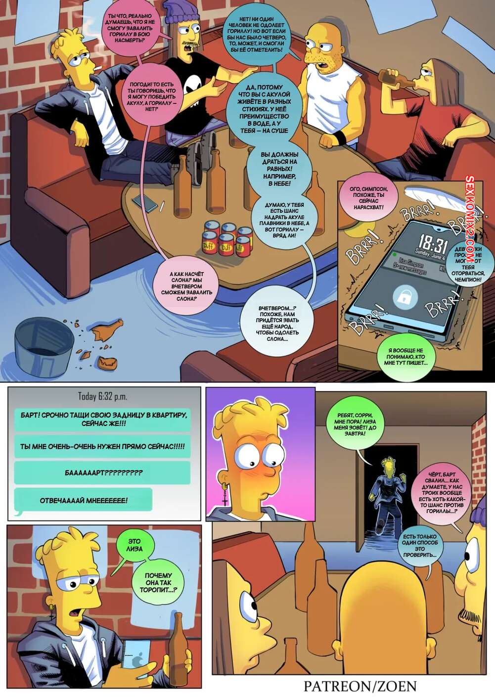 ΠΠΎΡΠ½ΠΎ ΠΊΠΎΠΌΠΈΠΊΡ Π‘ΠΈΠΌΠΏΡΠΎΠ½Ρ. Π§Π°ΡΡΡ Ρ ΠΠΈΠ·ΠΎΠΉ. The Simpsons. Chat With Lisa. Zoen. ΠΠ°ΡΡ ΠΎΠ±ΡΠ°Π»ΡΡ ΡΠΎ ΡΠ²ΠΎΠΈΠΌΠΈ Π΄ΡΡΠ·ΡΡΠΌΠΈ ΠΈ Π²ΡΠΏΠΈΠ²Π°Π», Π½ΠΎ Π΅ΠΌΡ Π½Π°ΠΏΠΈΡΠ°Π»Π° ΠΠΈΠ·Π°, ΠΎΡΠΏΡΠ°Π²ΠΈΠ² ΡΠ²ΠΎΠΈ ΠΎΡΠΊΡΠΎΠ²Π΅Π½Π½ΡΠ΅ ΡΠΎΡΠΎΠ³ΡΠ°ΡΠΈΠΈ. ΠΠ°ΡΠ΅Π½Ρ ΡΠΎΡΠ²Π°Π»ΡΡ Π΄ΠΎΠΌΠΎΠΉ, ΡΡΠΎΠ±Ρ Π²ΡΠ΅Π±Π°ΡΡ Π·Π°Π΄Π½ΠΈΡΡ ΠΈ ΠΊΠΈΡΠΊΡ ΡΠ²ΠΎΠ΅ΠΉ Π»ΡΠ±ΠΈΠΌΠΎΠΉ ΡΠ΅ΡΡΡΡ.