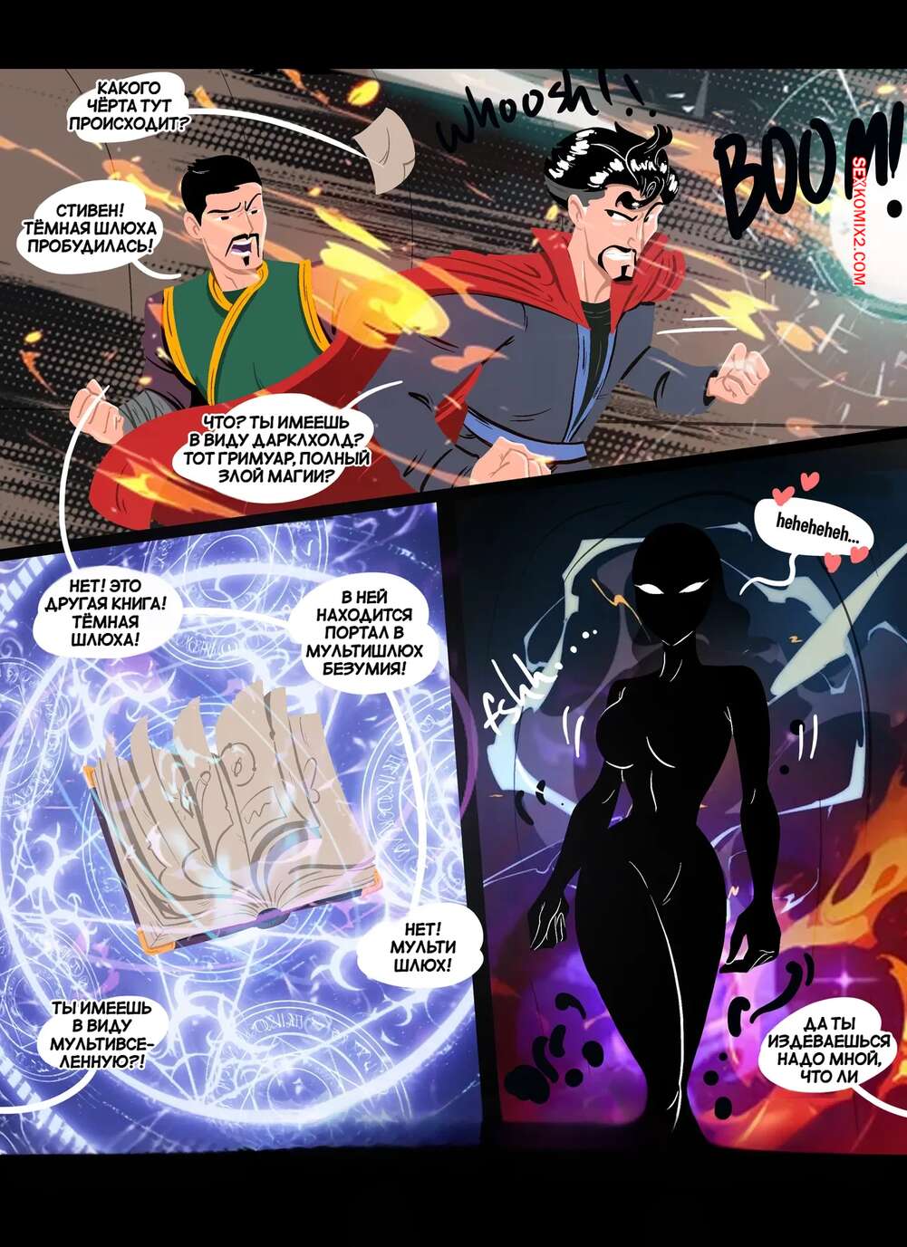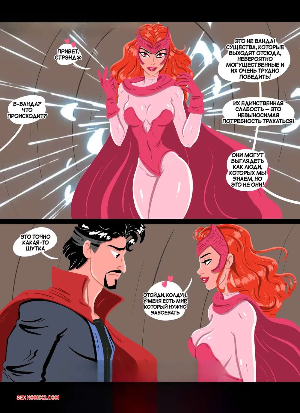 Порно комикс Marvel. Мультишлюхи безумия. Multiwhores of Madness. Bunnify This Из волшебной книги появилась мультишлюха в теле Ванды, с которой столкнулся Доктор Стрендж. Сучка собирается захватить мир, но герой ее останавливает и подумывает ее выебать.